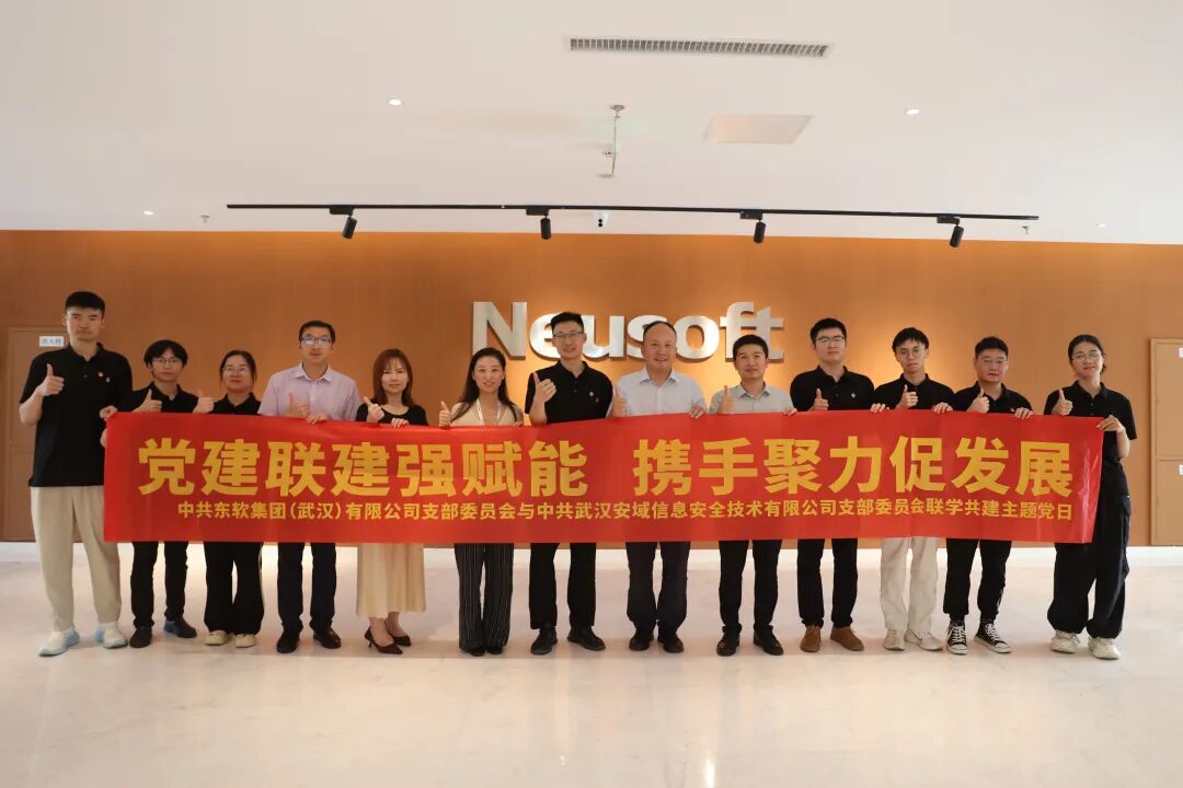 七月党旗高扬,初心如磐。为深化党建与网络安全业务的深度融合,2025 年 7 月 9 日,武汉安域信息安全技术有限公司(以下简称“武汉安域”)党支部与东软(武汉)集团有限公司(以下简称“武汉东软”)党支部联合开展 “党建联建强赋能,携手聚力促发展” 主题活动。此次活动既是党建联建凝聚红色动能的生动实践,更是共筑网络安全屏障的深度探索,以高质量党建引领网络安全事业高质量发展。